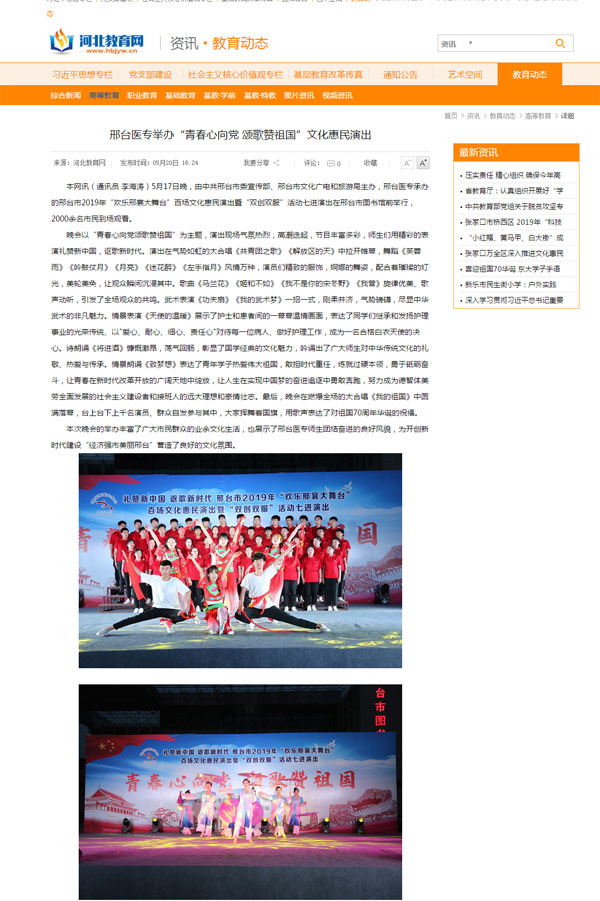 上一条:河北教育网报道“邢台医学高等专科学校为党员过‘政治生日’”
