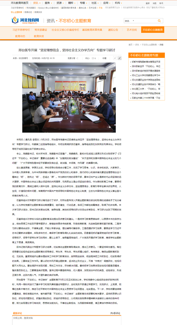 下一条:河北教育网报道“邢台医专召开‘不忘初心、牢记使命’主题教育动员部署会议”