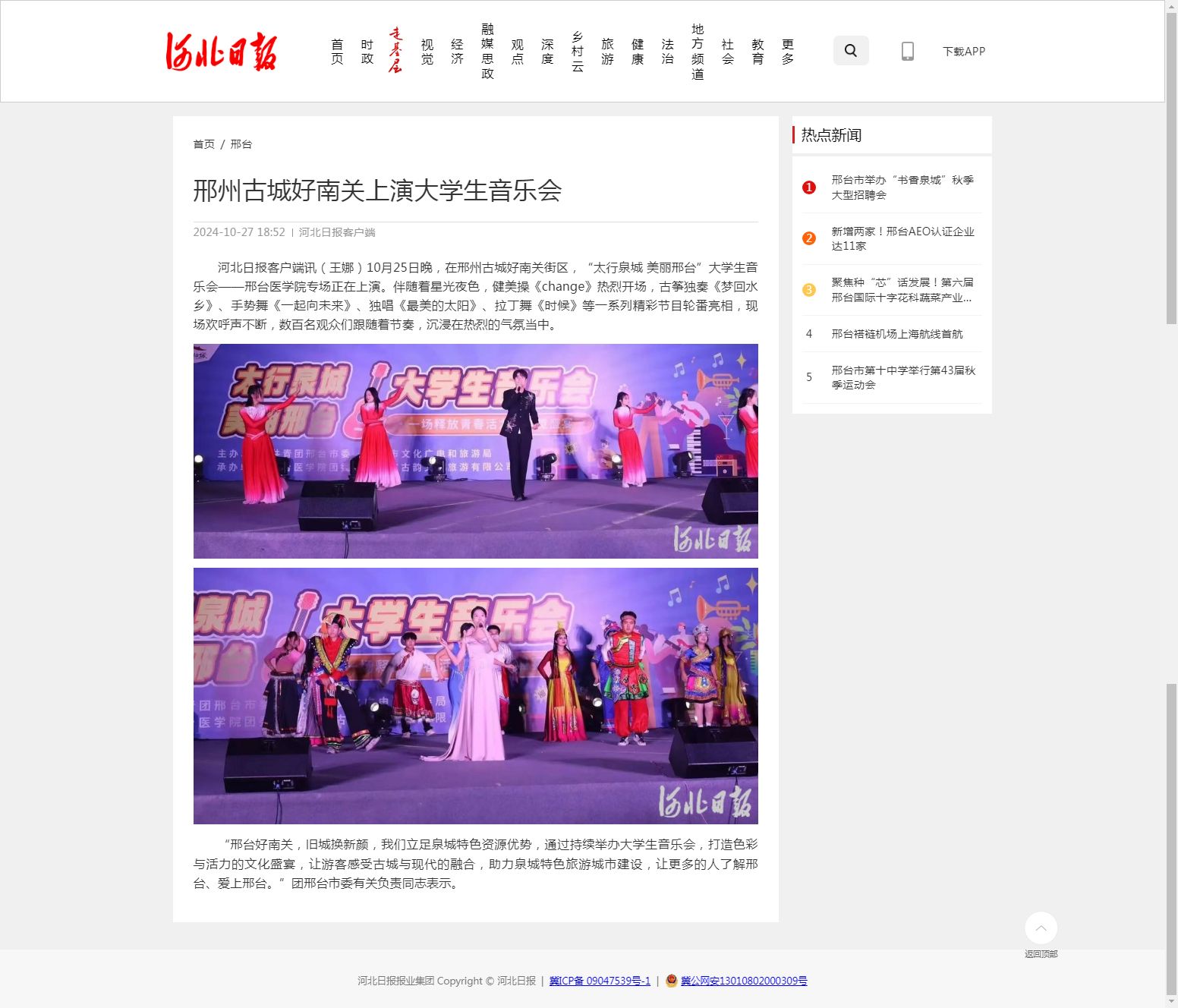 “邢台好南关,旧城换新颜,我们立足泉城特色资源优势,通过持续举办大学生音乐会,打造色彩与活力的文化盛宴,让游客感受古城与现代的融合,助力泉城特色旅游城市建设,让更多的人了解邢台、爱上邢台。”团邢台市委有关负责同志表示。