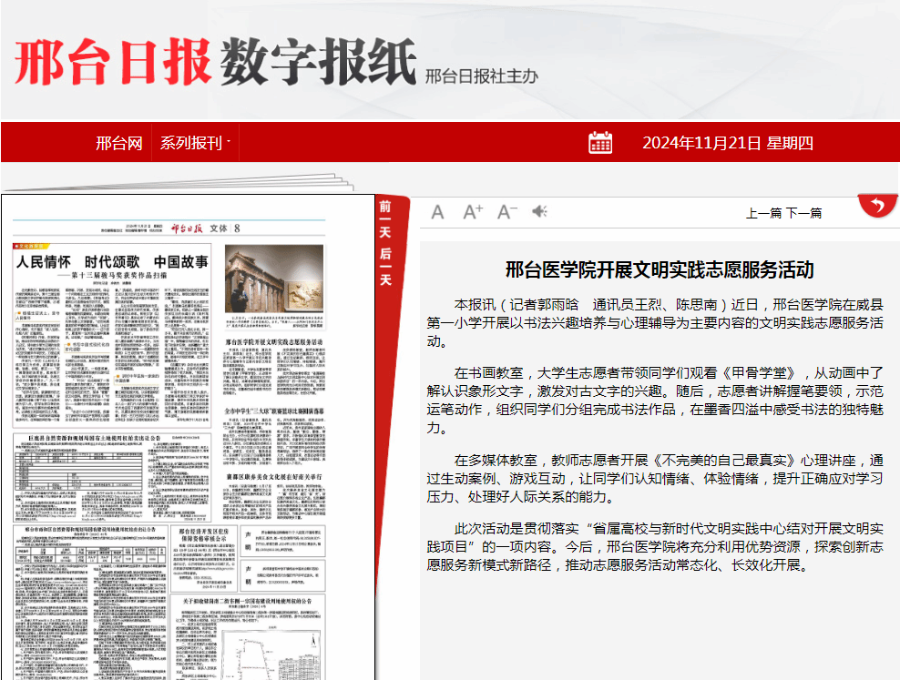 近日,Beat365中文官方网站在威县第一小学开展以书法兴趣培养与心理辅导为主要内容的文明实践志愿服务活动。