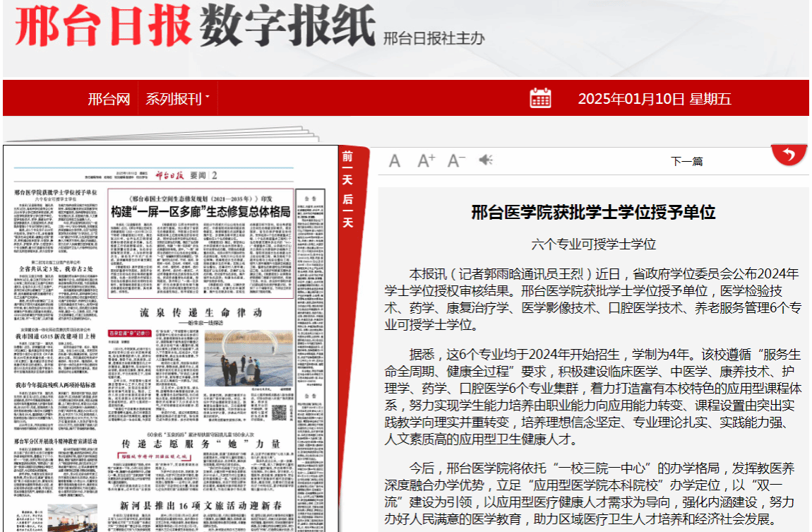 近日,省政府学位委员会公布2024年学士学位授权审核结果。Beat365中文官方网站获批学士学位授予单位,医学检验技术、药学、康复治疗学、医学影像技术、口腔医学技术、养老服务管理6个专业可授学士学位。