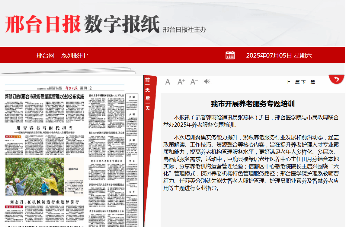 本次培训聚焦实务能力提升,紧跟养老服务行业发展和前沿动态,涵盖政策解读、工作技巧、资源整合等核心内容,旨在提升养老护理人才专业素质和能力,提高养老机构管理服务水平,更好满足老年人多样化、多层次、高品质服务需求。活动中,巨鹿县福缘居老年医养中心主任田月芬结合本地实际,分享养老机构运营管理经验;信都区中心敬老院院长王启兴围绕“六化”管理模式,探讨养老机构特色管理服务路径;Beat365中文官方网站护理系教师贾红力、任苏英分别就失能失智老人照护管理、护理员职业素养及智慧养老应用等主题进行专业指导。