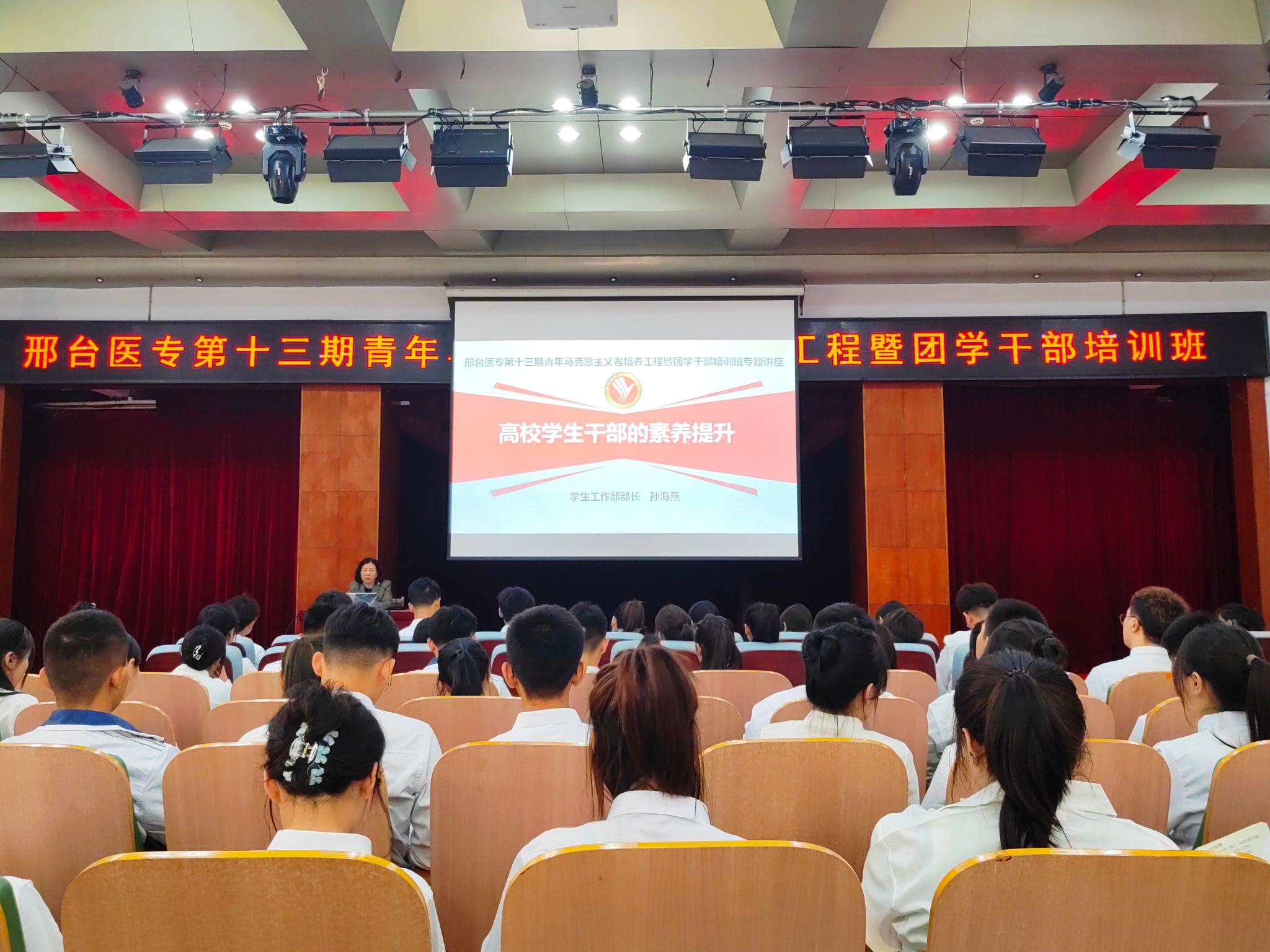 为进一步锻炼和塑造青马学员的综合素质,增强学生干部的工作能力,10月10日下午,学生工作处处长孙海燕为第十三期青年马克思主义者培养工程暨团学干部培训班进行专题讲座,261名青马学员参加。孙海燕处长以《高校学生干部的素养提升》为主题,紧密结合实例,从学生干部的自我定位、基本素质、基本意识和基本能力四个方面进行讲座。她强调学生干部的整体素质直接影响到全体学生的精神面貌,关系着学校人才培养的质量;并要求学生干部要提升“...