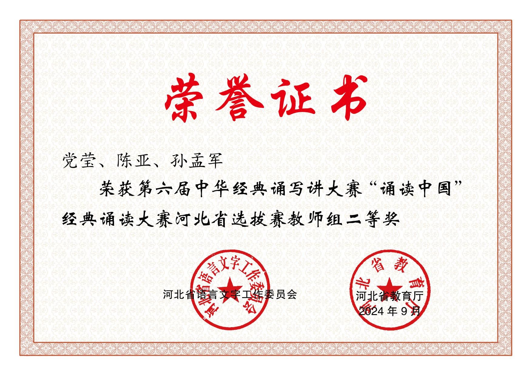 09-12-2024喜报!Beat365在第六届中华经典诵写讲大赛河北省选拔赛中获奖