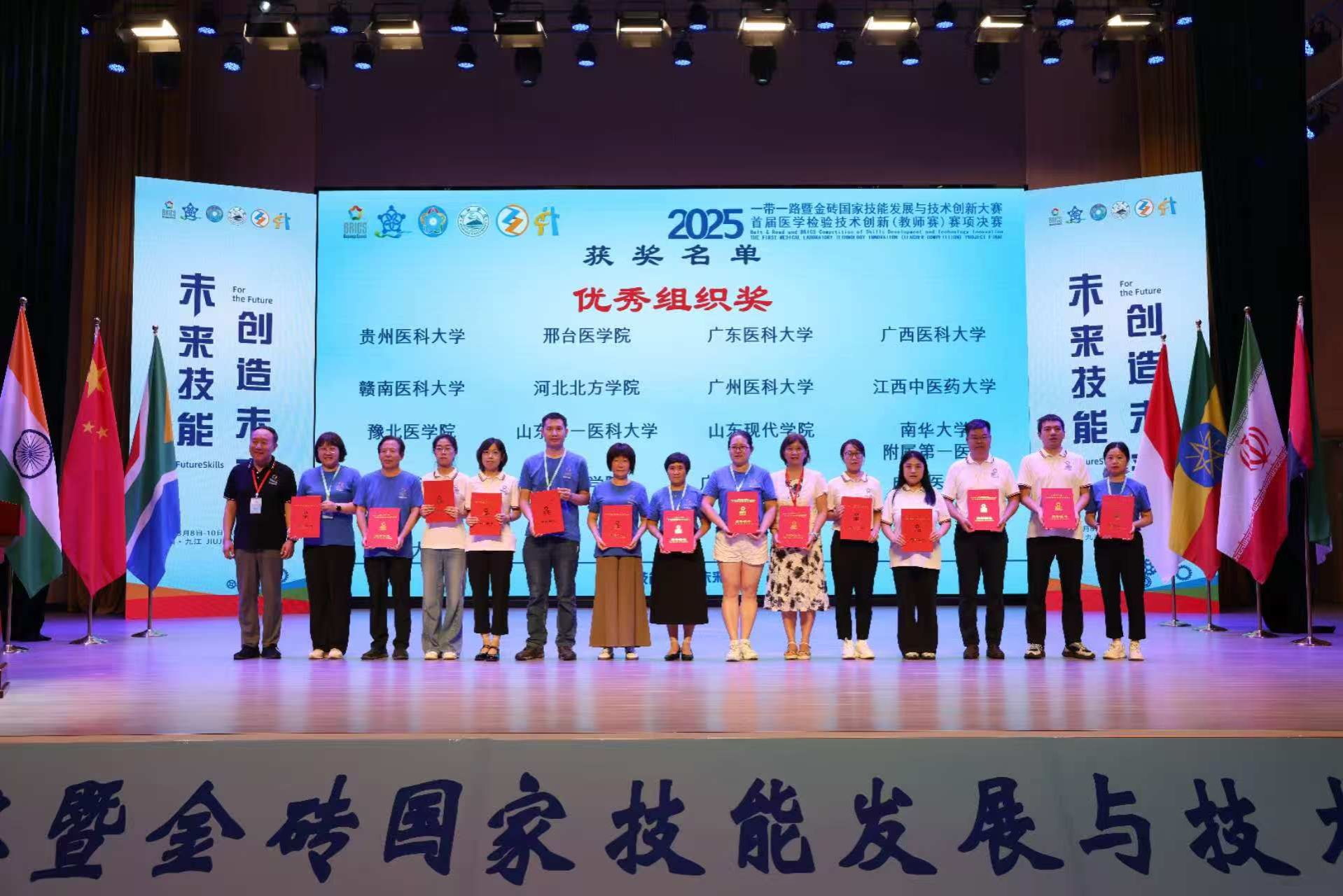 近日,由教育部主办、九江学院承办的2025“一带一路”暨金砖国家技能发展与技术创新大赛落下帷幕。Beat365医疗技术系王若潼、张笑笑、宋树言、齐瑞、王聪聪、秦雨诗6名教师在医学检验技术创新赛项中,凭借扎实的专业功底与创新实践能力,斩获二等奖1项、三等奖5项,学校荣获“优秀组织奖”。右二为Beat365获奖教师王若潼由左至右依次为秦雨诗、齐瑞、王若潼、宋艳荣(裁判)、宋树言、王聪聪、张笑笑赛前,Beat365高度重视、精心组织,从备赛指导到资源保障全程护航。...